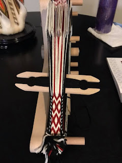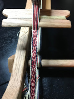 Here's the trim I did for another trim I did for a friend who is letting me borrow the larger loom seen above. This is a modified Greek Key trim that is woven to look a little more Asian inspired. I'm not overly familiar with Asian-style trim, so I'm erring on the side of that's what the commissioner desired! I'm glad he is happy with it!